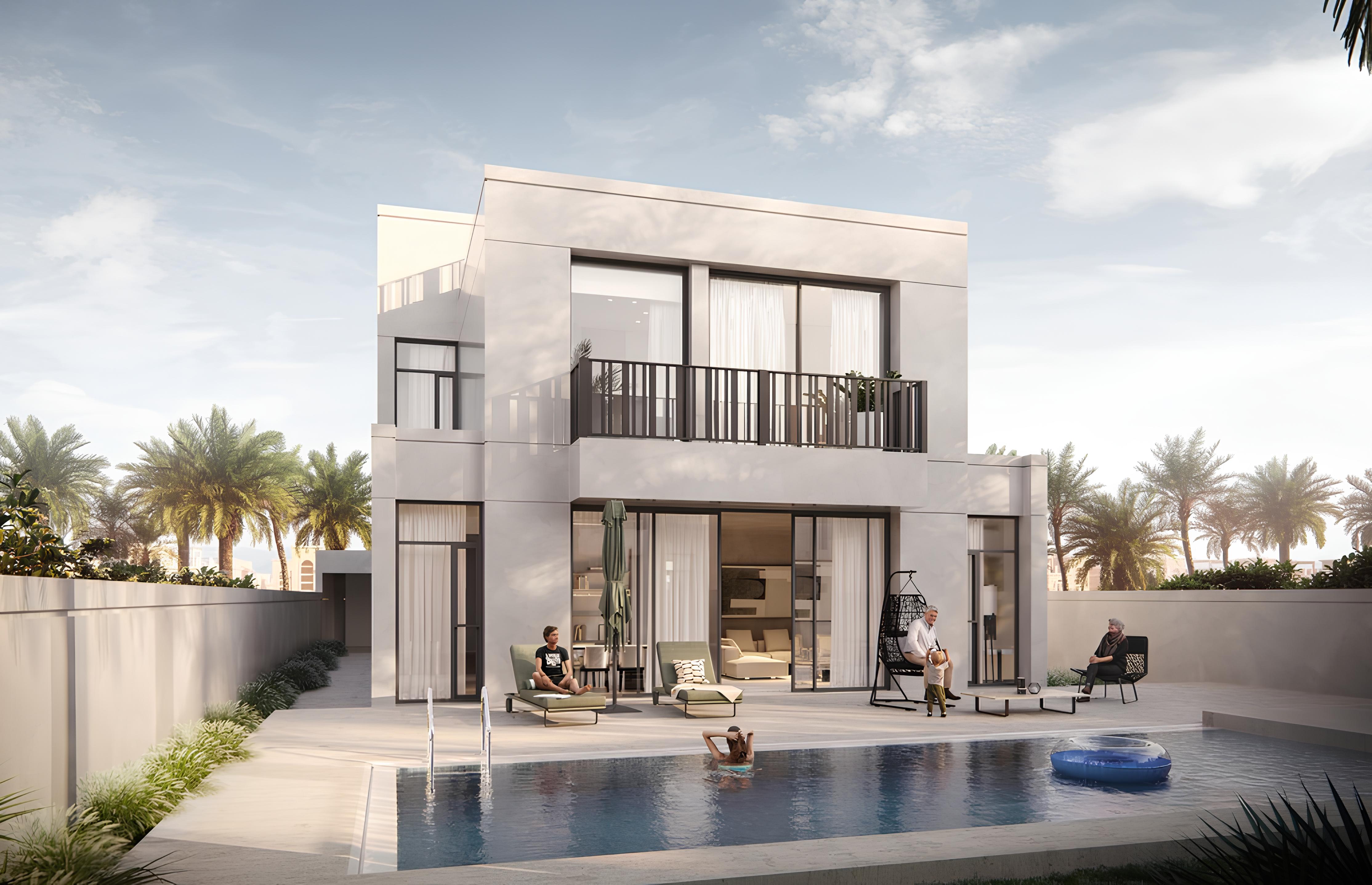 Sunrise Living by H&H Development is a collection of contemporary 5-bedroom villas situated in the tranquil setting of Jumeirah Park, Dubai. The project reflects a minimalist architectural approach that balances sophistication with elegance, featuring energy-efficient glass panels that maximize natural light and seamlessly connect interior and exterior spaces.