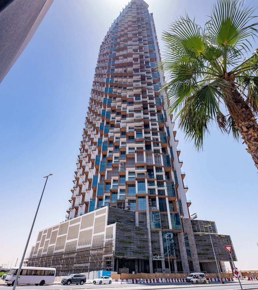 SLS Dubai Hotel & Residences is a 75-story landmark developed by WOW Real Estate Development in the Business Bay district. The building features panoramic windows that provide expansive views of Dubai’s cityscape. The complex includes 946 units, comprising 254 hotel rooms, 321 apartments, and 371 residences such as lofts, studios, apartments, and duplexes, designed with modern architectural elements like terraces and double-height ceilings.