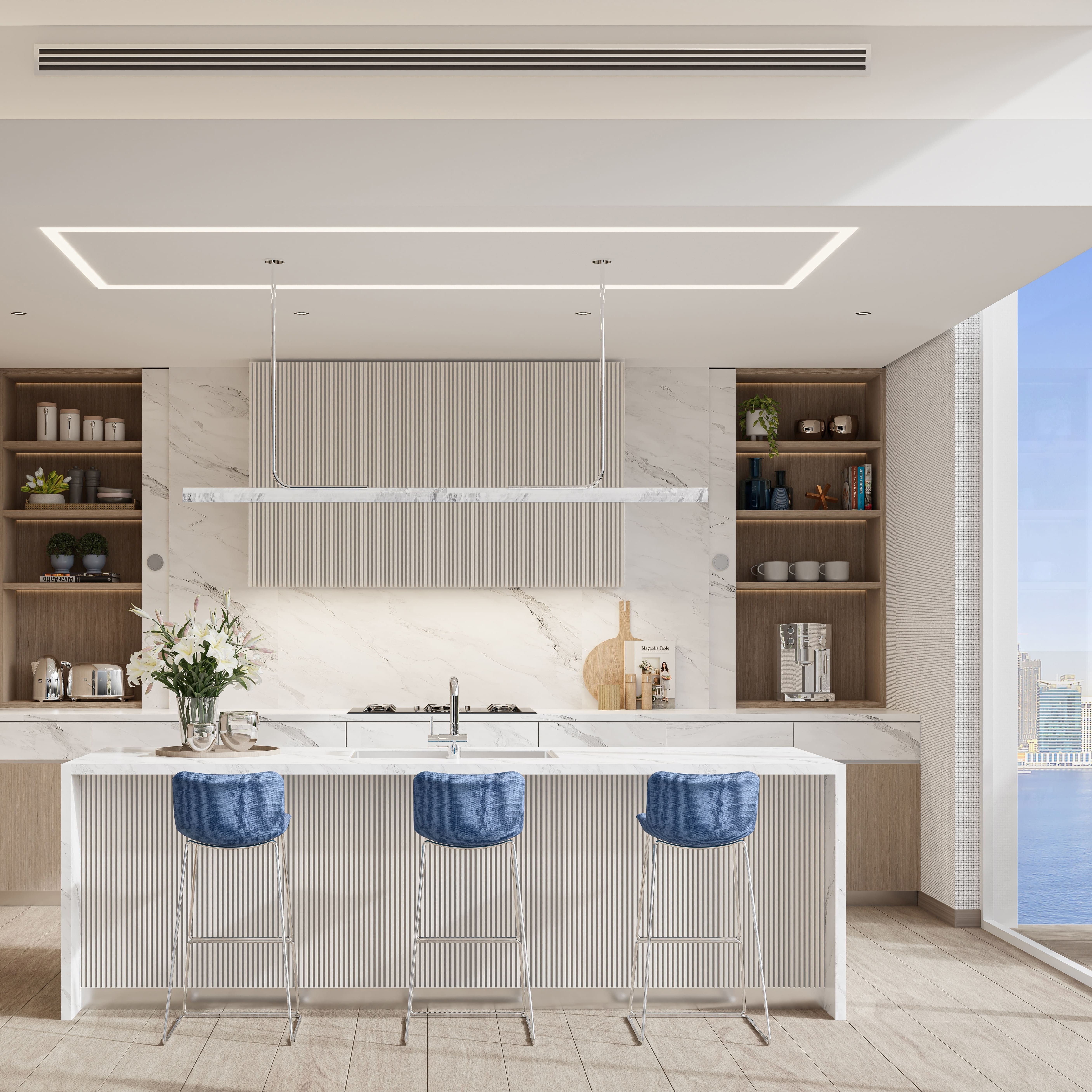 The residences include studios, one-, two-, and three-bedroom apartments, as well as a custom-designed five-bedroom penthouse. Each unit is thoughtfully planned with spacious layouts, modern plumbing, and high-quality finishes that reflect careful attention to detail.