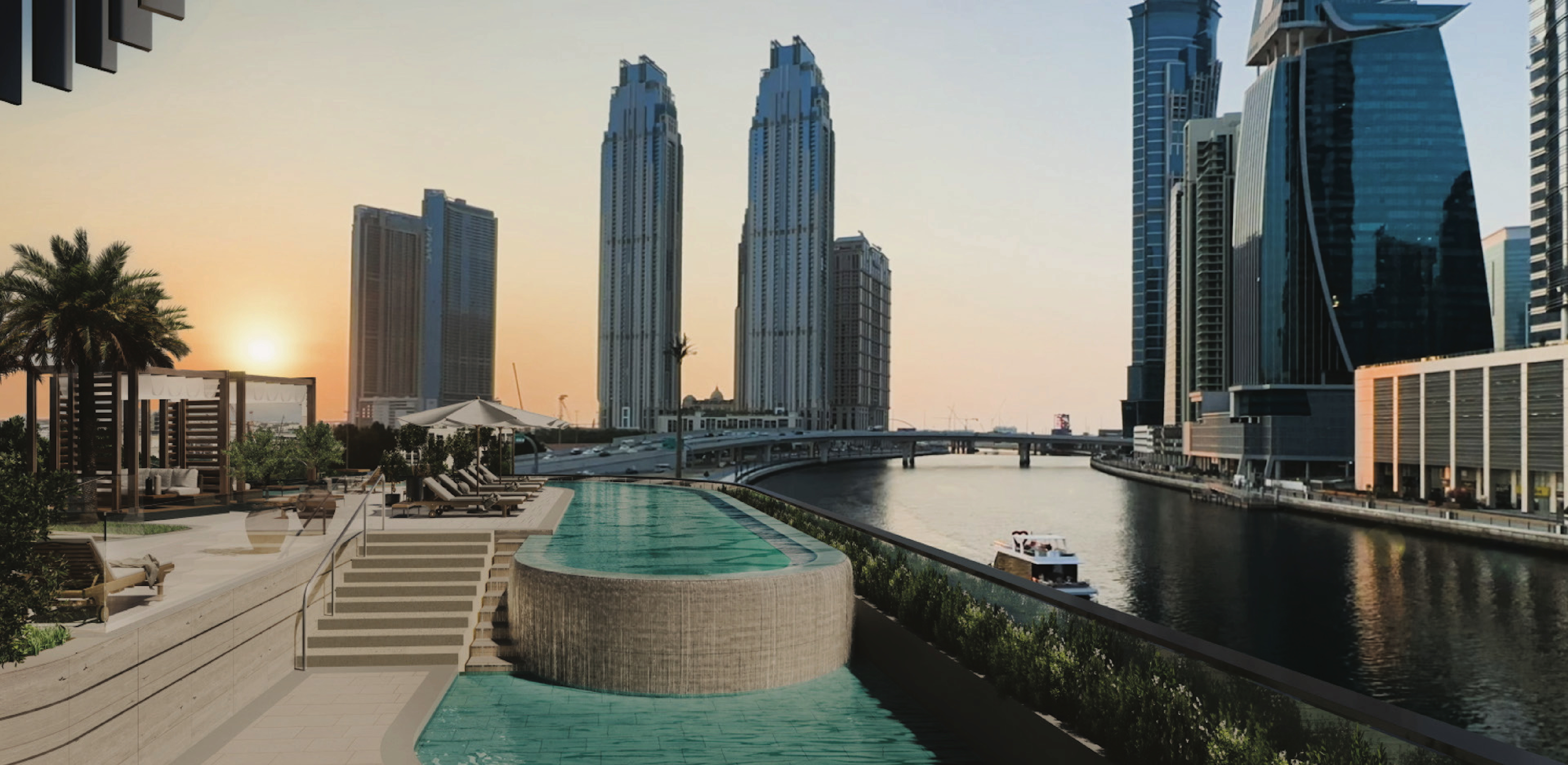 One River Point by Ellington Properties is a distinguished residential tower situated along the Dubai Canal in Business Bay. The development features two underground levels, a ground floor, five podium floors, 37 residential floors, and a rooftop, presenting a sophisticated architectural design that blends modern aesthetics with refined elegance. The tower offers one- to three-bedroom apartments with panoramic views of the Burj Khalifa, Dubai Canal, and the Persian Gulf.