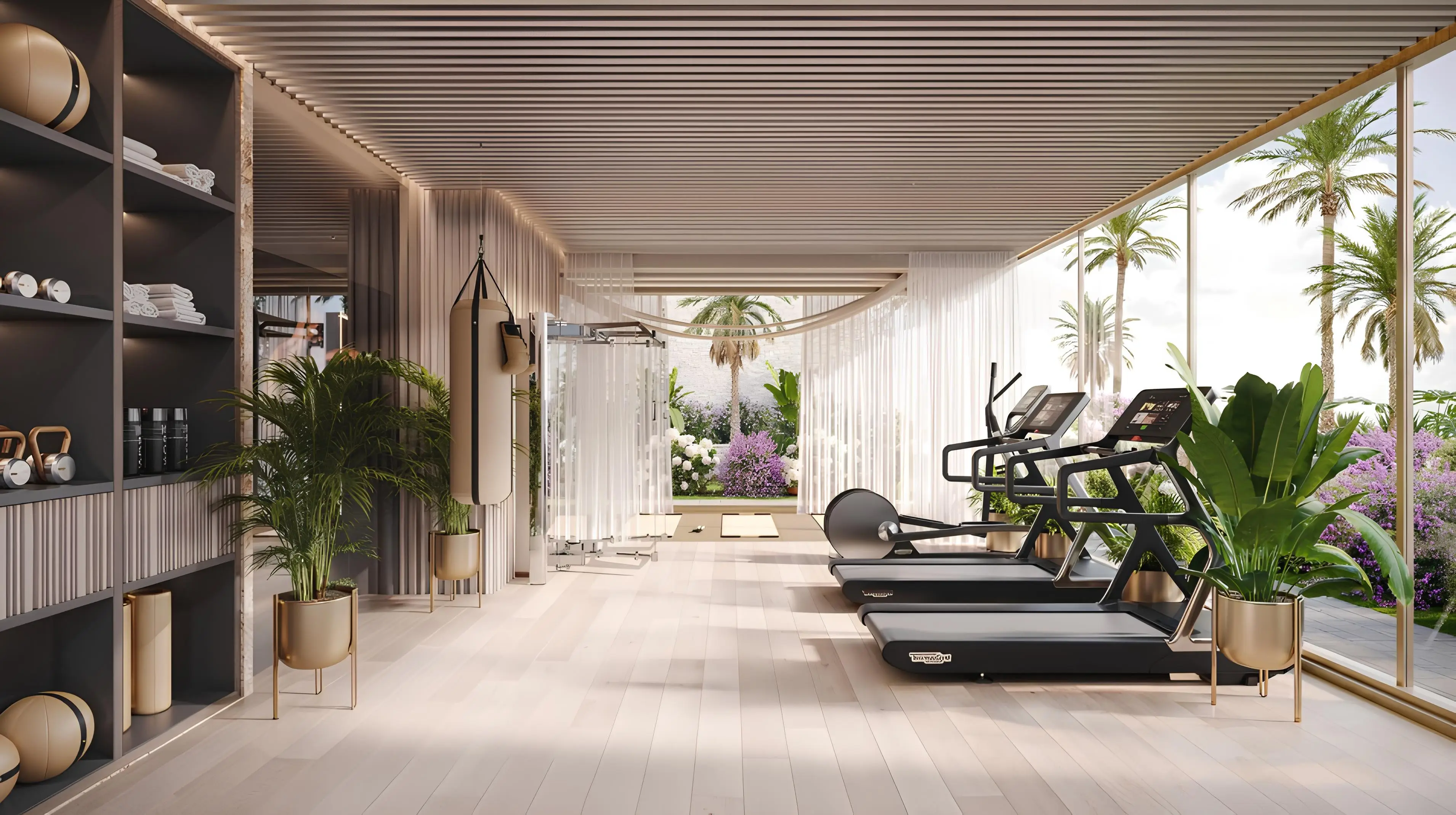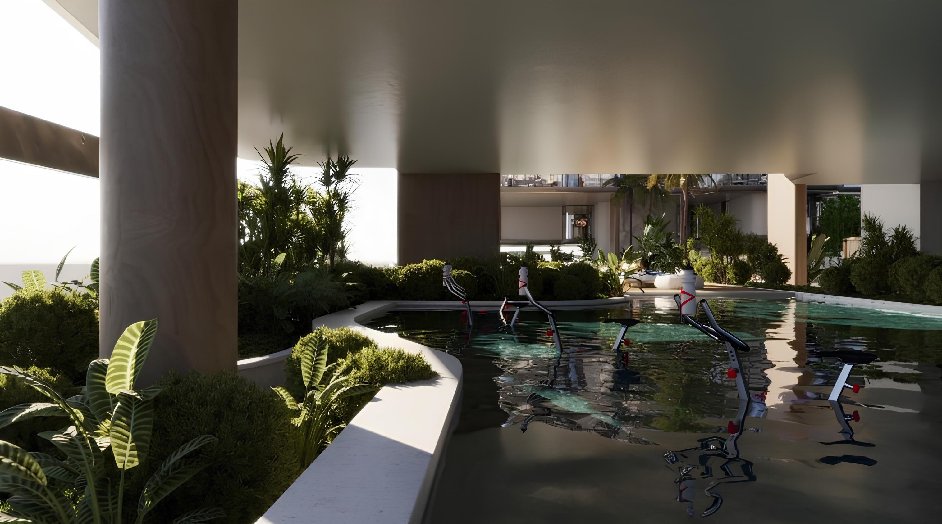 Residents benefit from a comprehensive selection of 53 amenities spread across three floors, supporting a resort-style lifestyle. Highlights include a steam room, Himalayan salt sauna, hot and cold plunge pools, meditation zones, a beauty salon, cryotherapy facilities, a bamboo oxygen park, jogging tracks, an aqua gym, mini golf, and multiple dining options such as the Green House Café. The location provides convenient access to beaches, golf courses, marinas, and key Dubai destinations, including Dubai International Airport and Downtown Dubai.