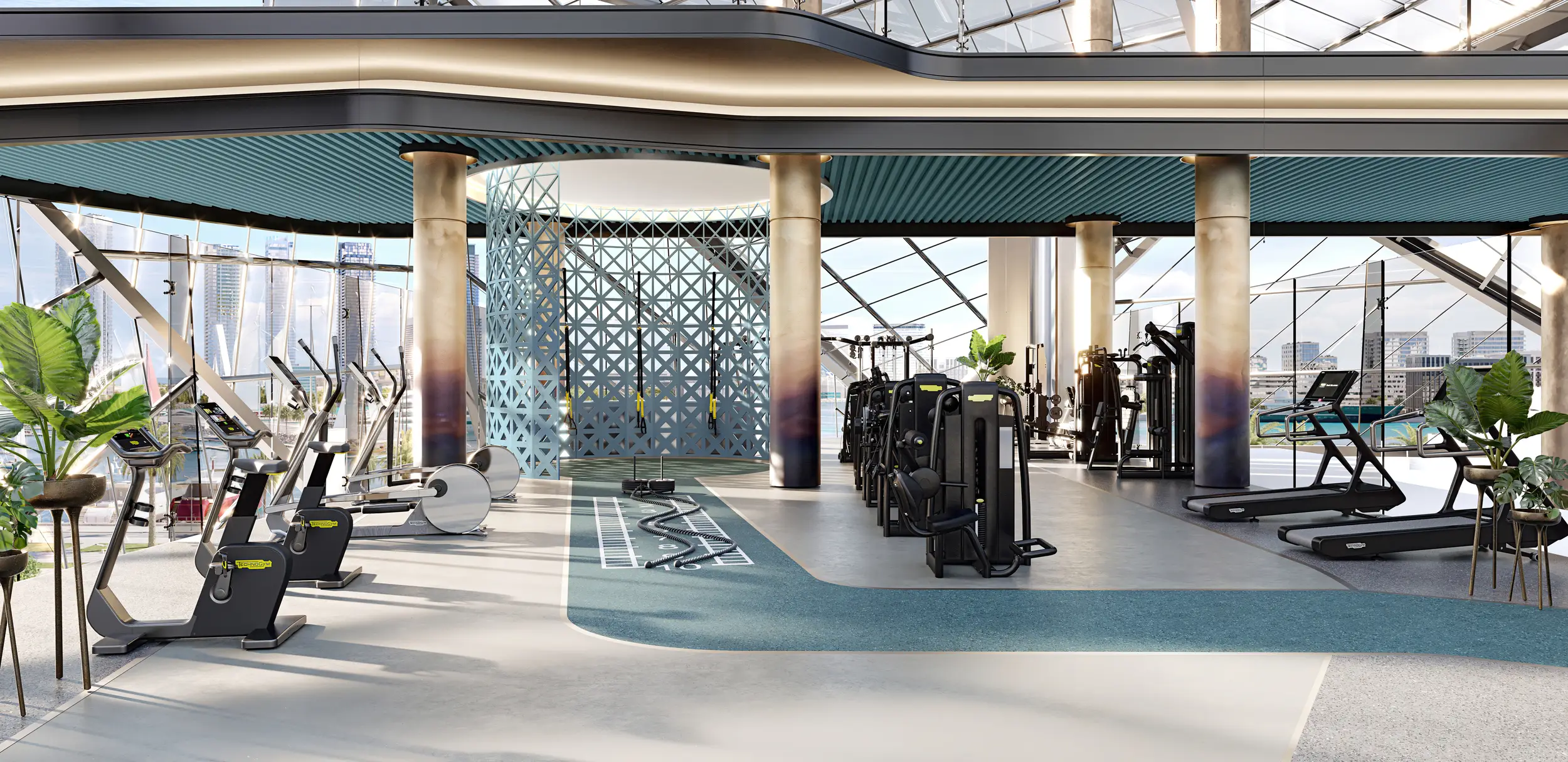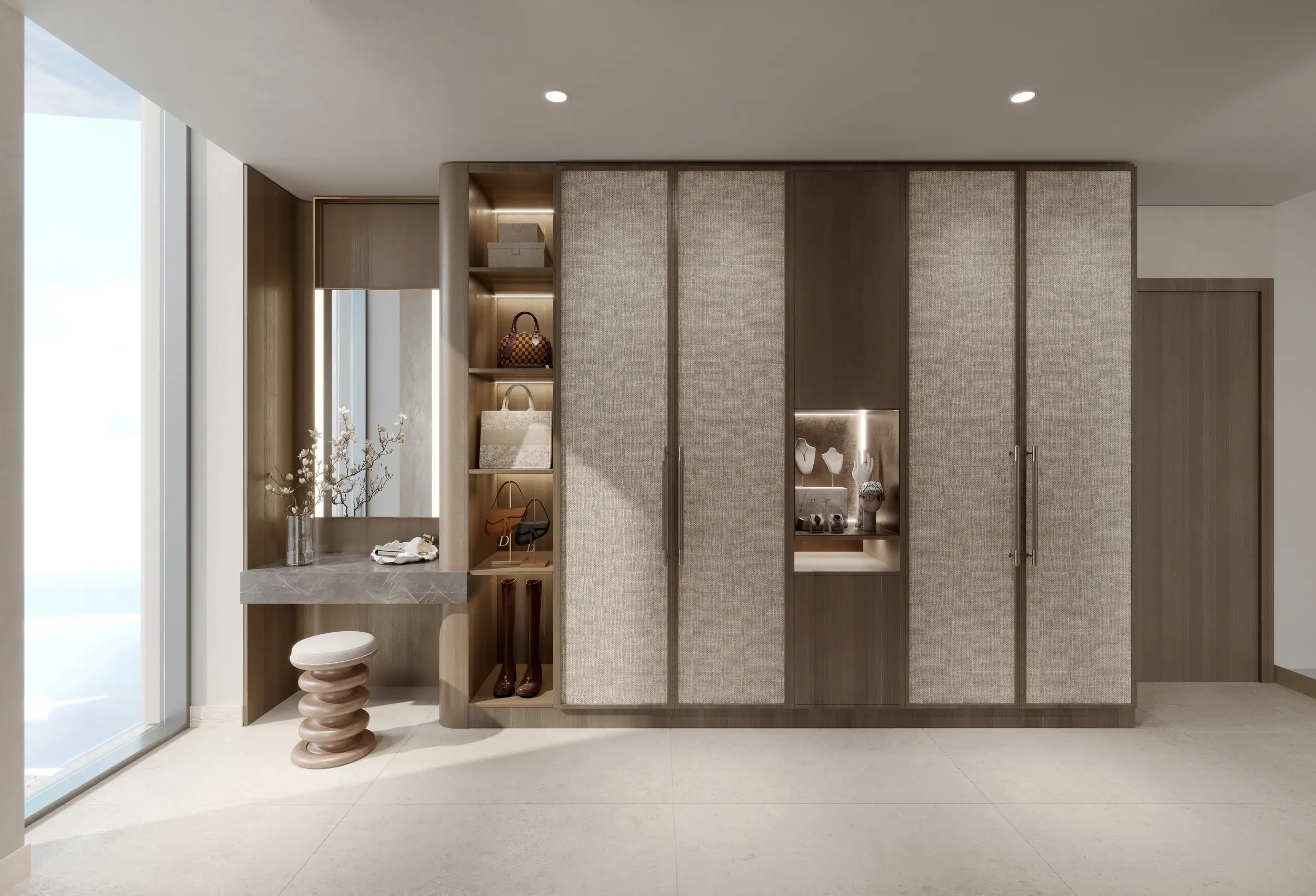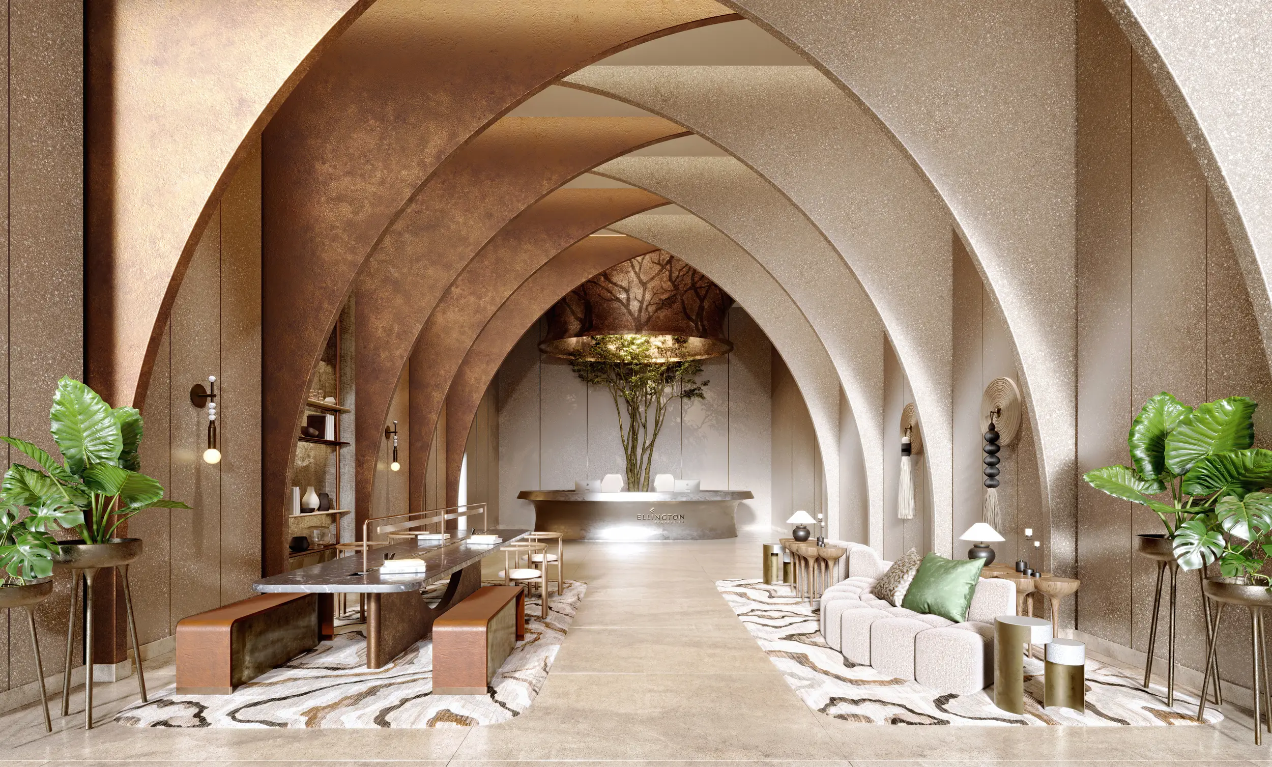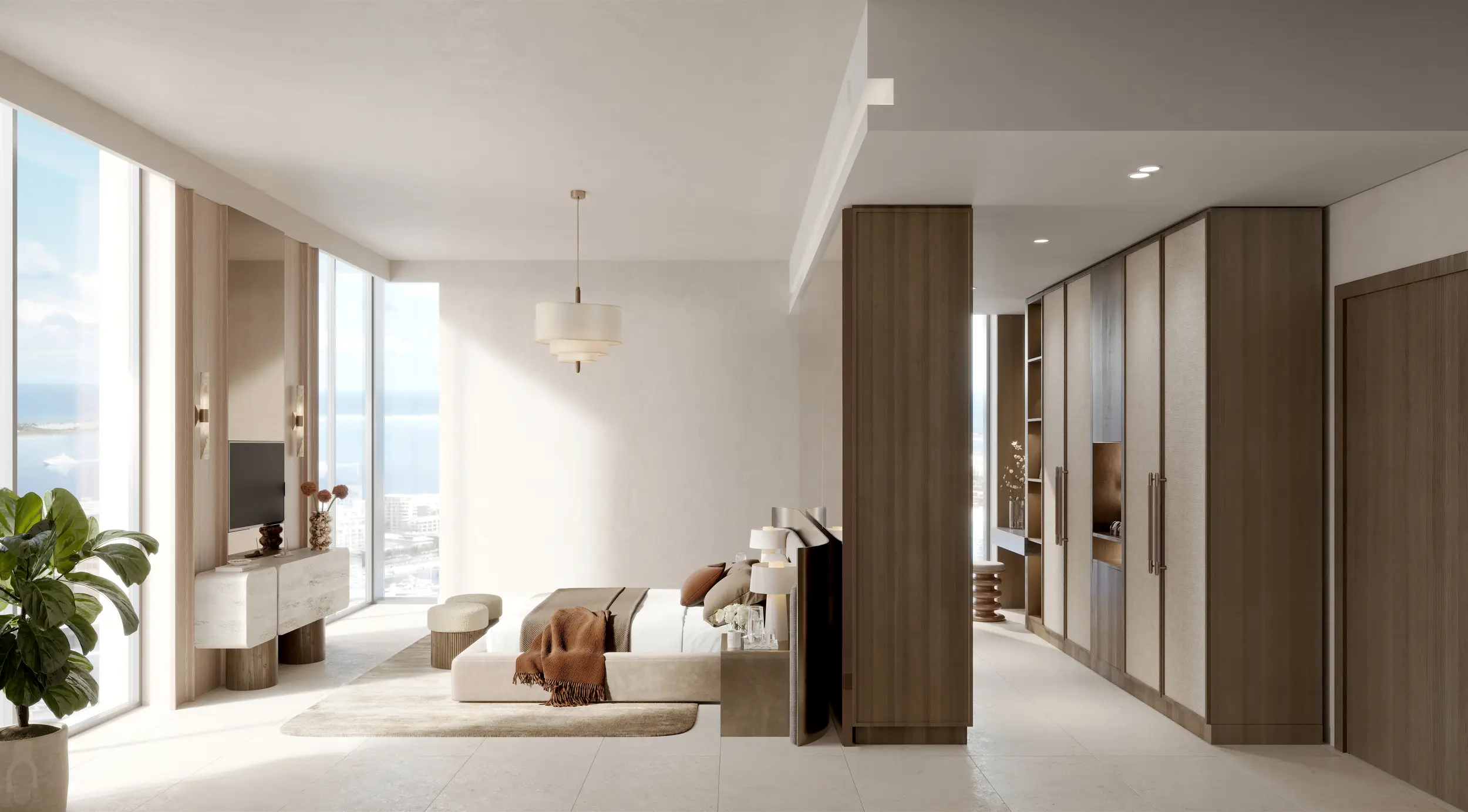 The residential component includes studios, one- and two-bedroom apartments, some with dedicated office spaces, as well as three- and four-bedroom penthouses. Each tower consists of a ground floor, podium, 16 residential levels, and a roof. Interiors are crafted with high-quality materials and modern finishes, reflecting a refined living environment.