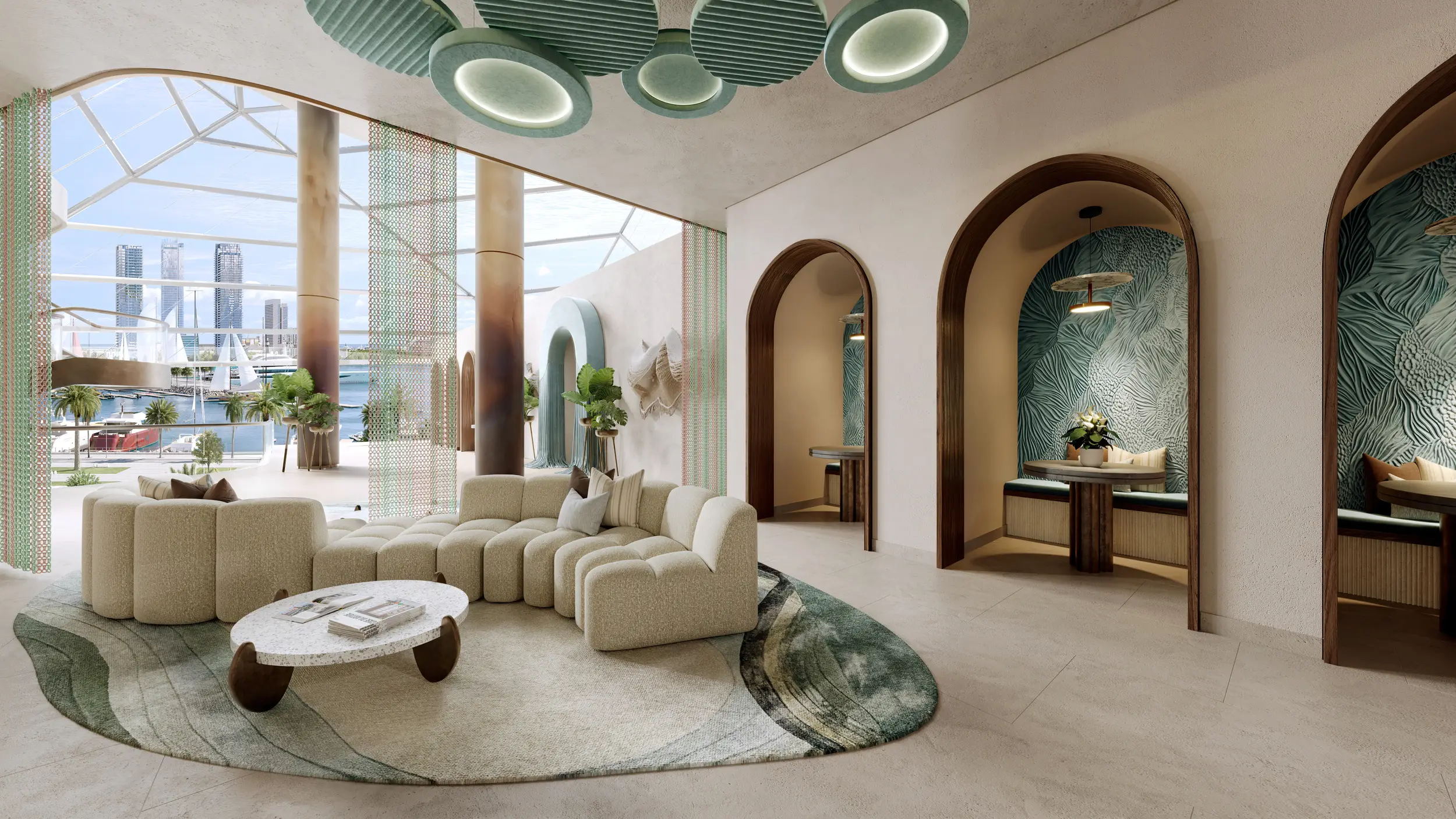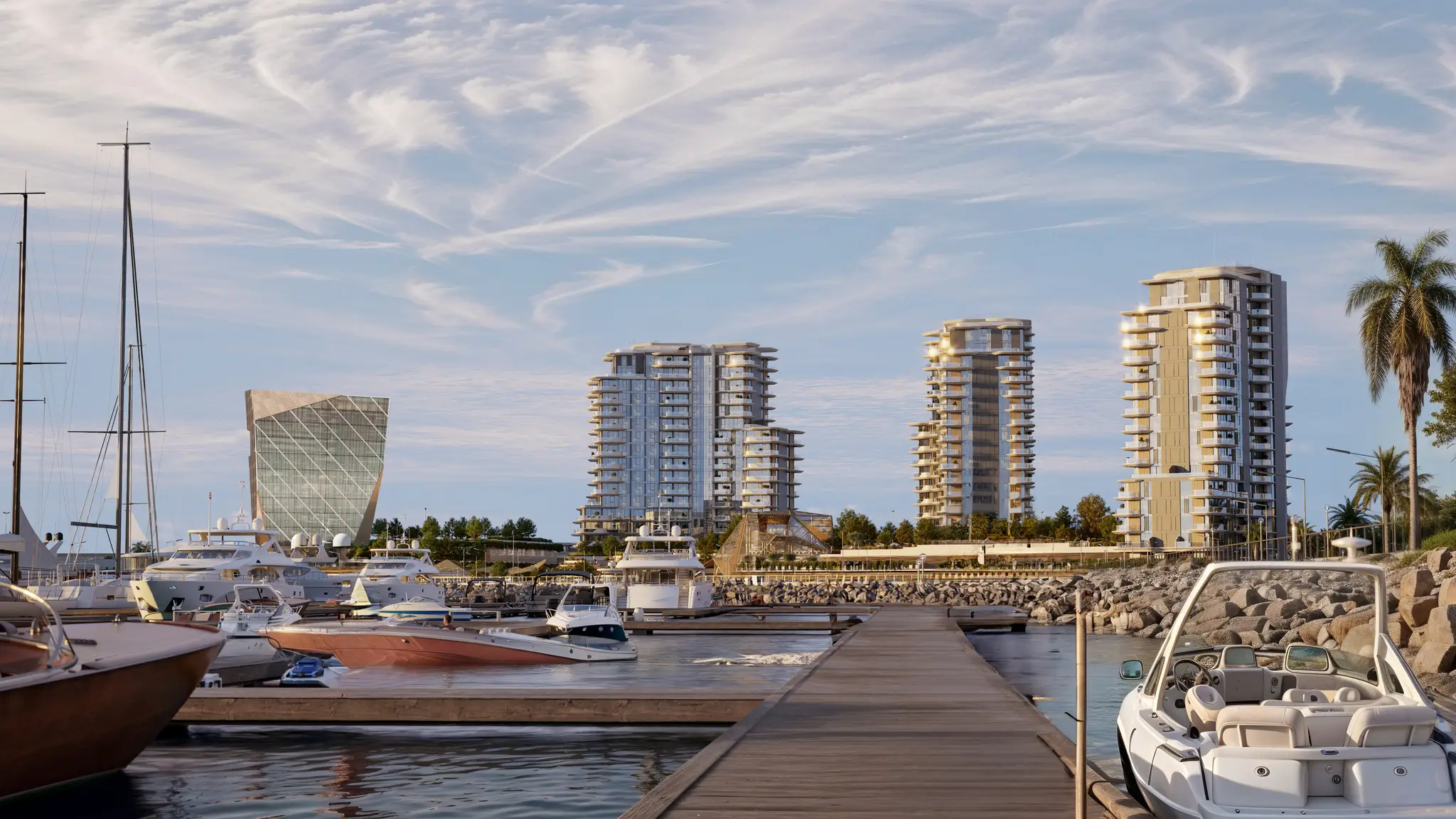 Portside Square, developed by Ellington Properties, is a distinctive complex located in the Mina Rashid district of Dubai. Comprising four towers—three residential and one office—it presents a contemporary architectural design inspired by the rhythms of the sea. The buildings feature smooth lines and contrasting elements that integrate seamlessly with the coastal environment.
