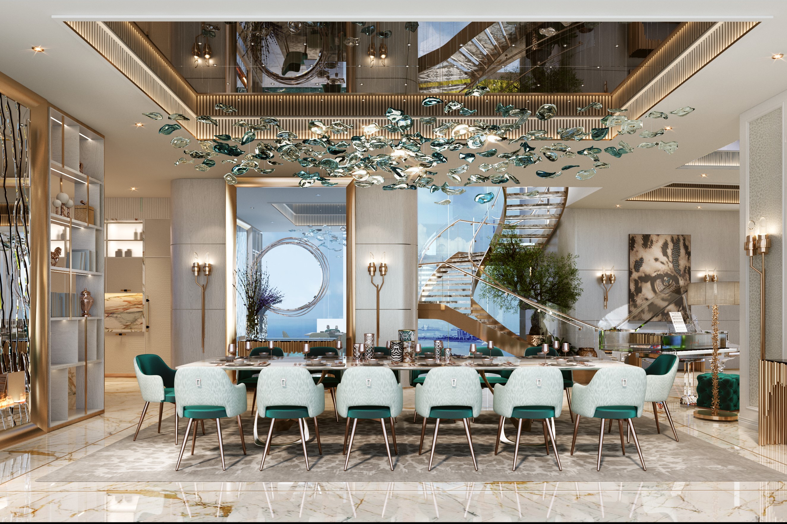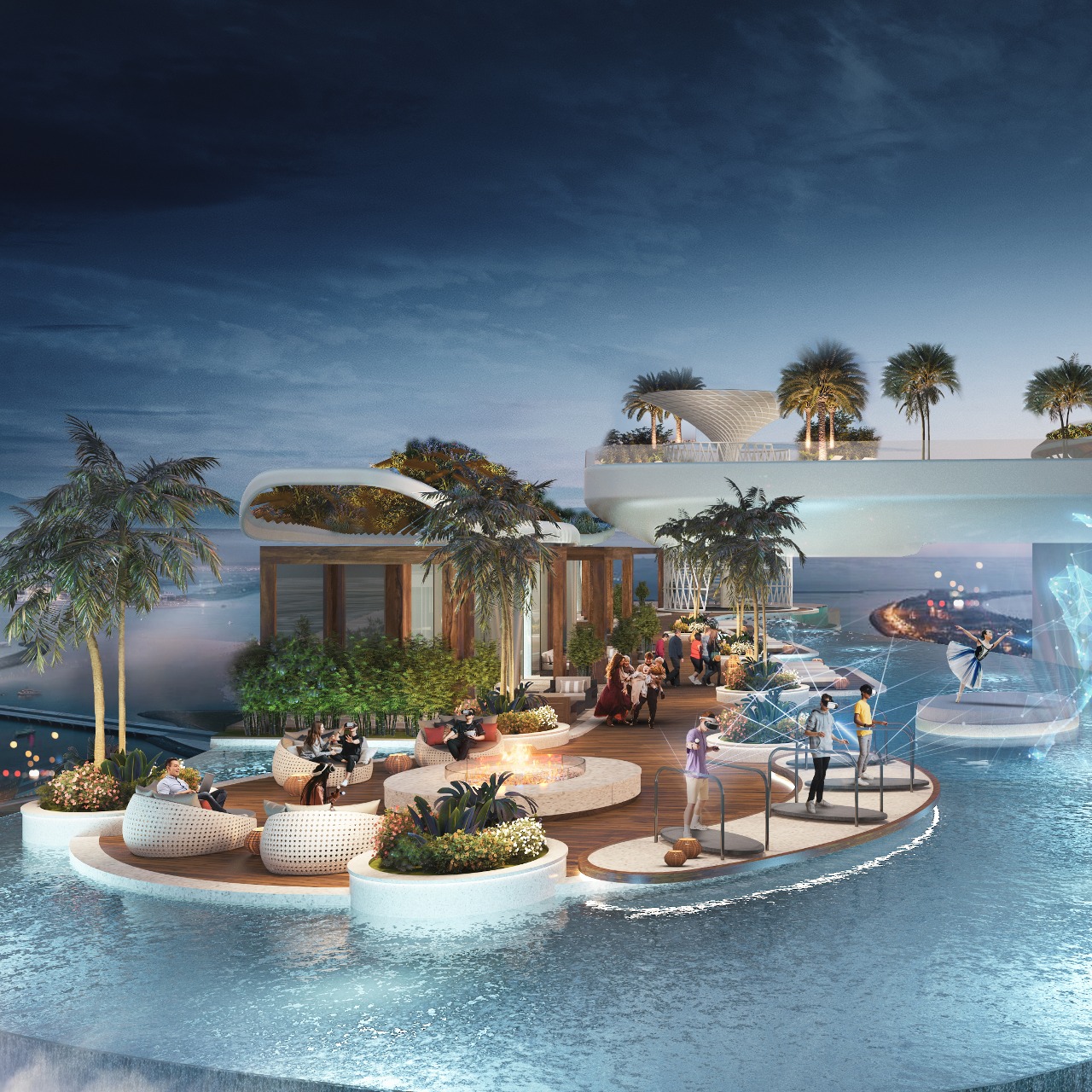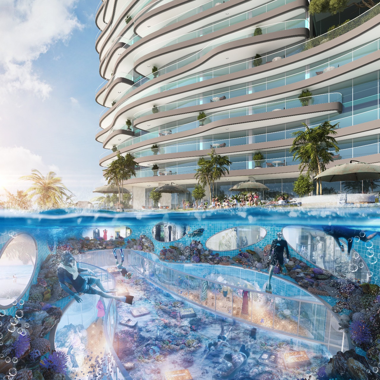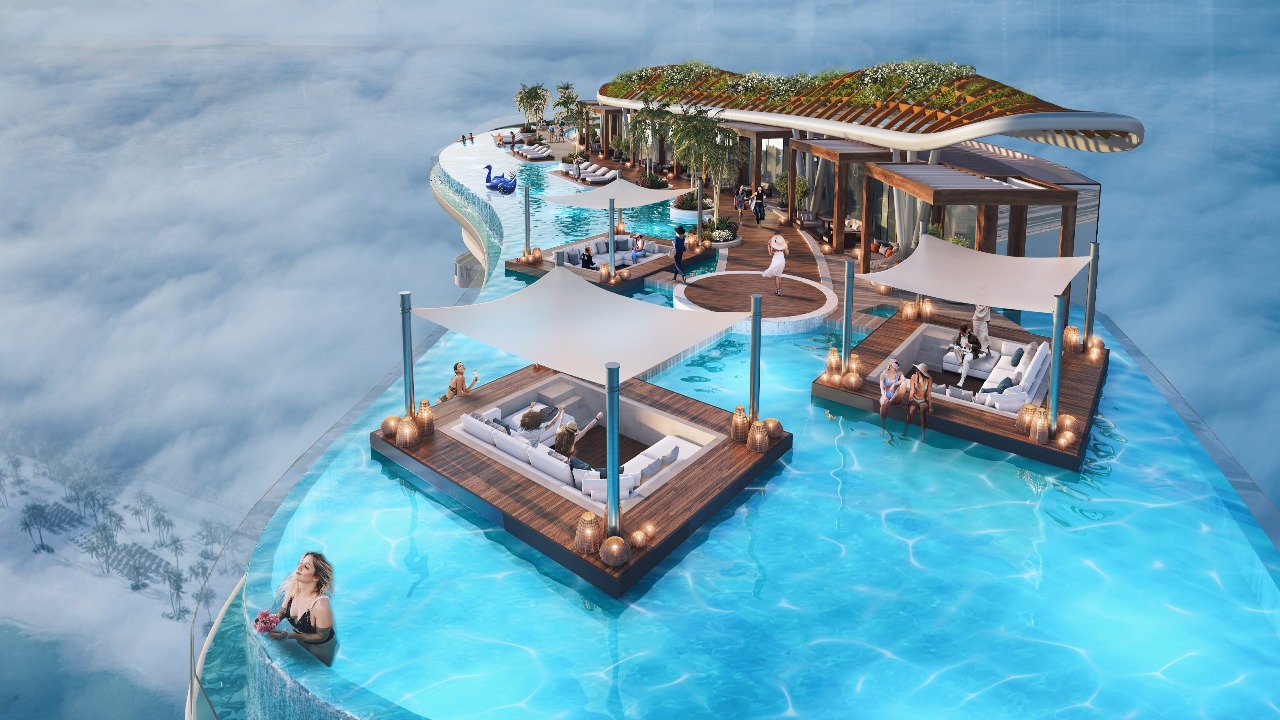 The residences include one- to three-bedroom apartments alongside exclusive lofts with private pools. Interiors reflect the exterior’s contemporary style, offering spacious layouts, panoramic windows, and high-quality finishes that balance luxury with comfort. The design integrates advanced technology and refined decorative elements to create an inviting atmosphere for residents.