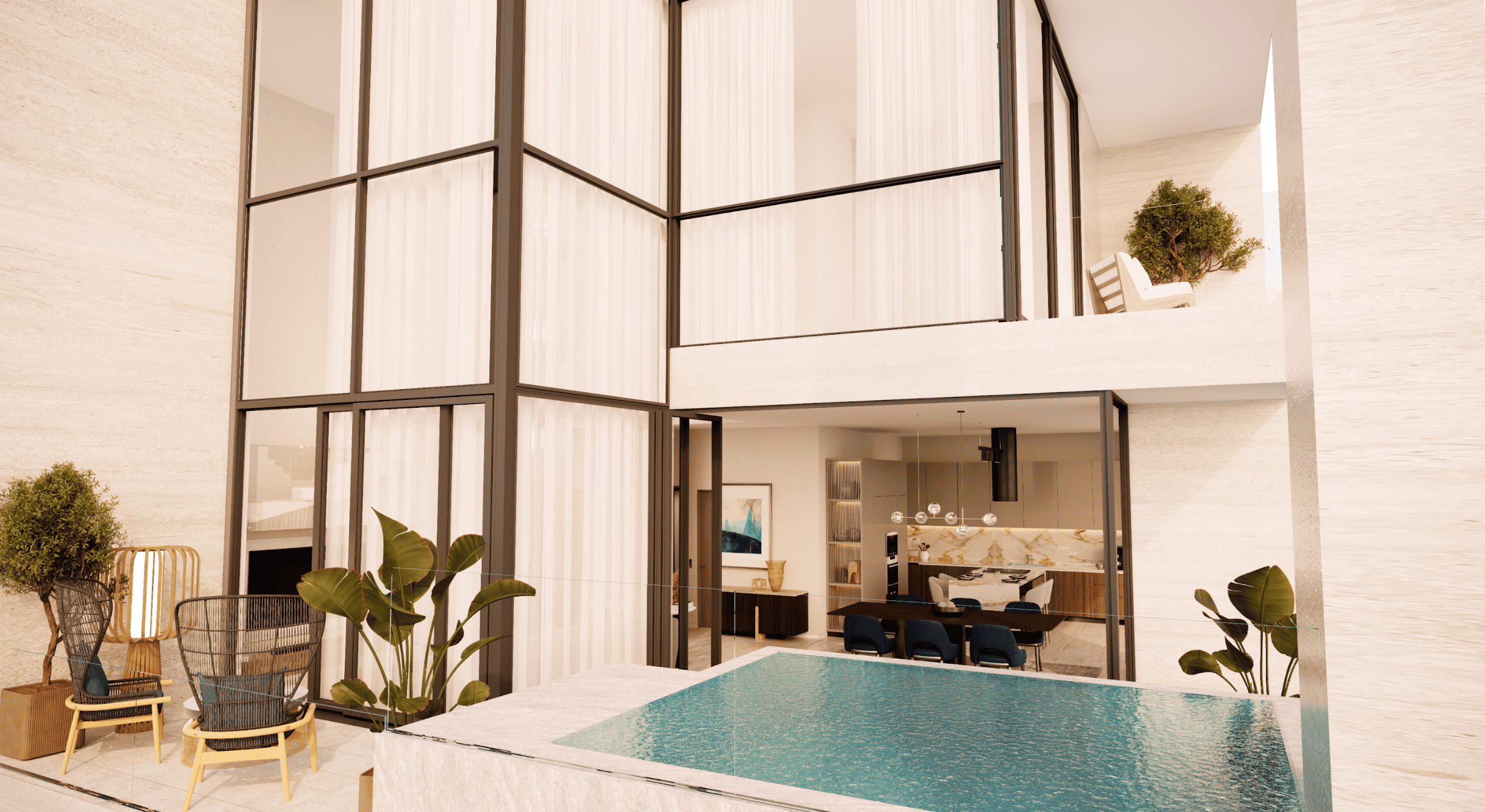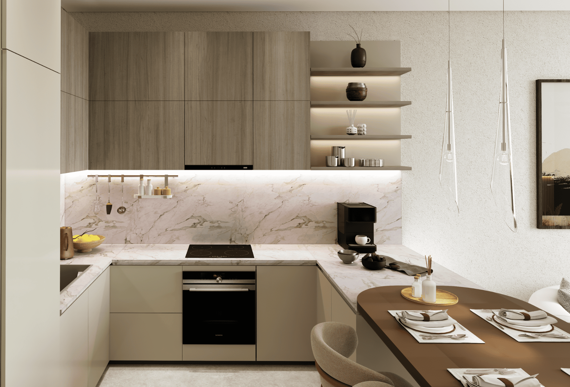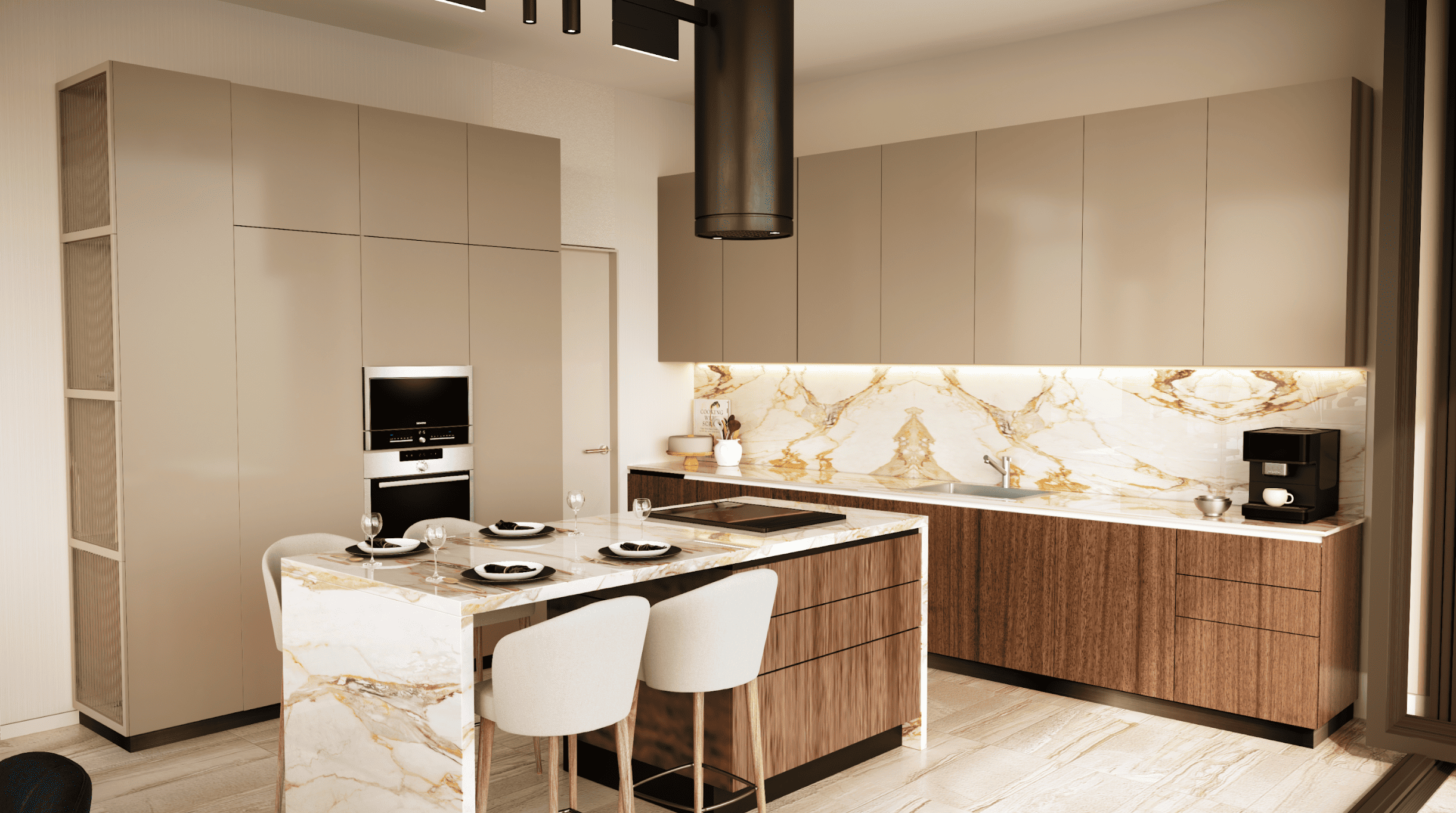 The residences include a refined selection of one-, two-, and three-bedroom apartments alongside spacious three- to five-bedroom duplexes. Each home is finished to a high standard, featuring premium kitchens equipped with Miele appliances in the apartments and Gaggenau appliances in the duplexes, reflecting a meticulous blend of modern design and craftsmanship.