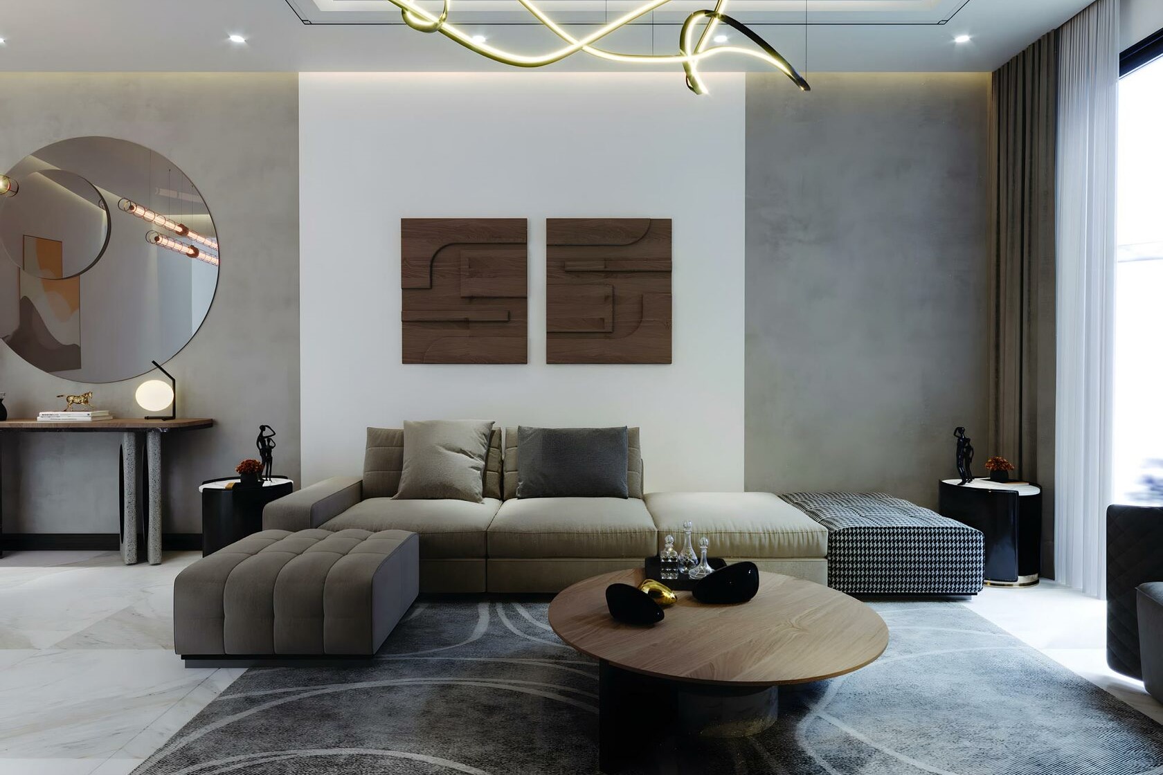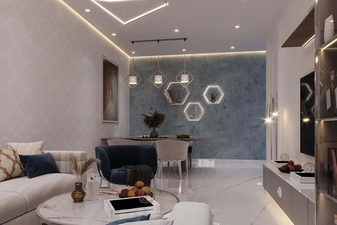 The residences include one- to four-bedroom apartments alongside commercial spaces, all designed with calm neutral tones that complement the serene environment. Interiors are crafted with premium materials, offering spacious layouts and scenic views of the bay and Dubai’s skyline, emphasizing quality and comfort throughout.