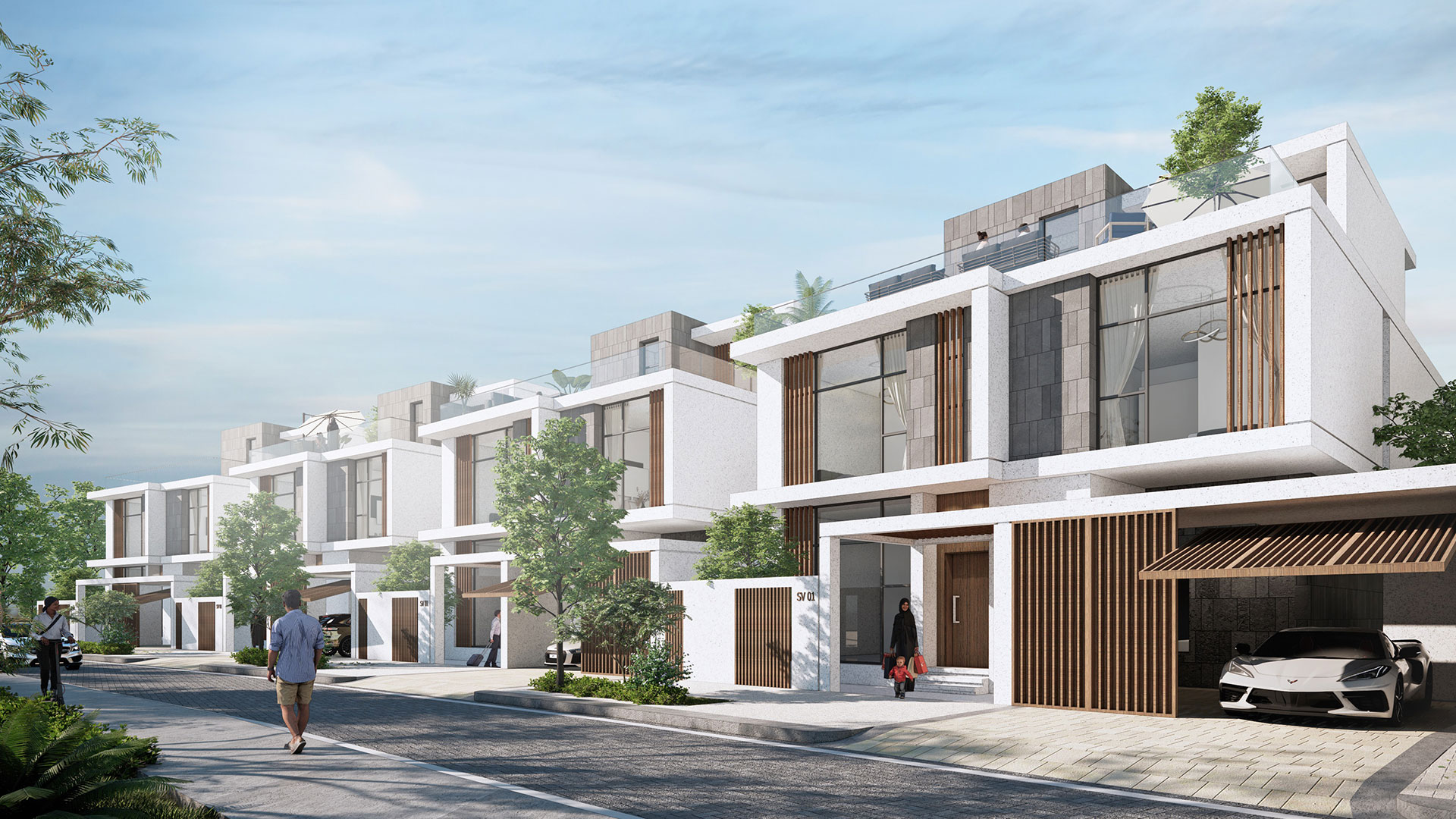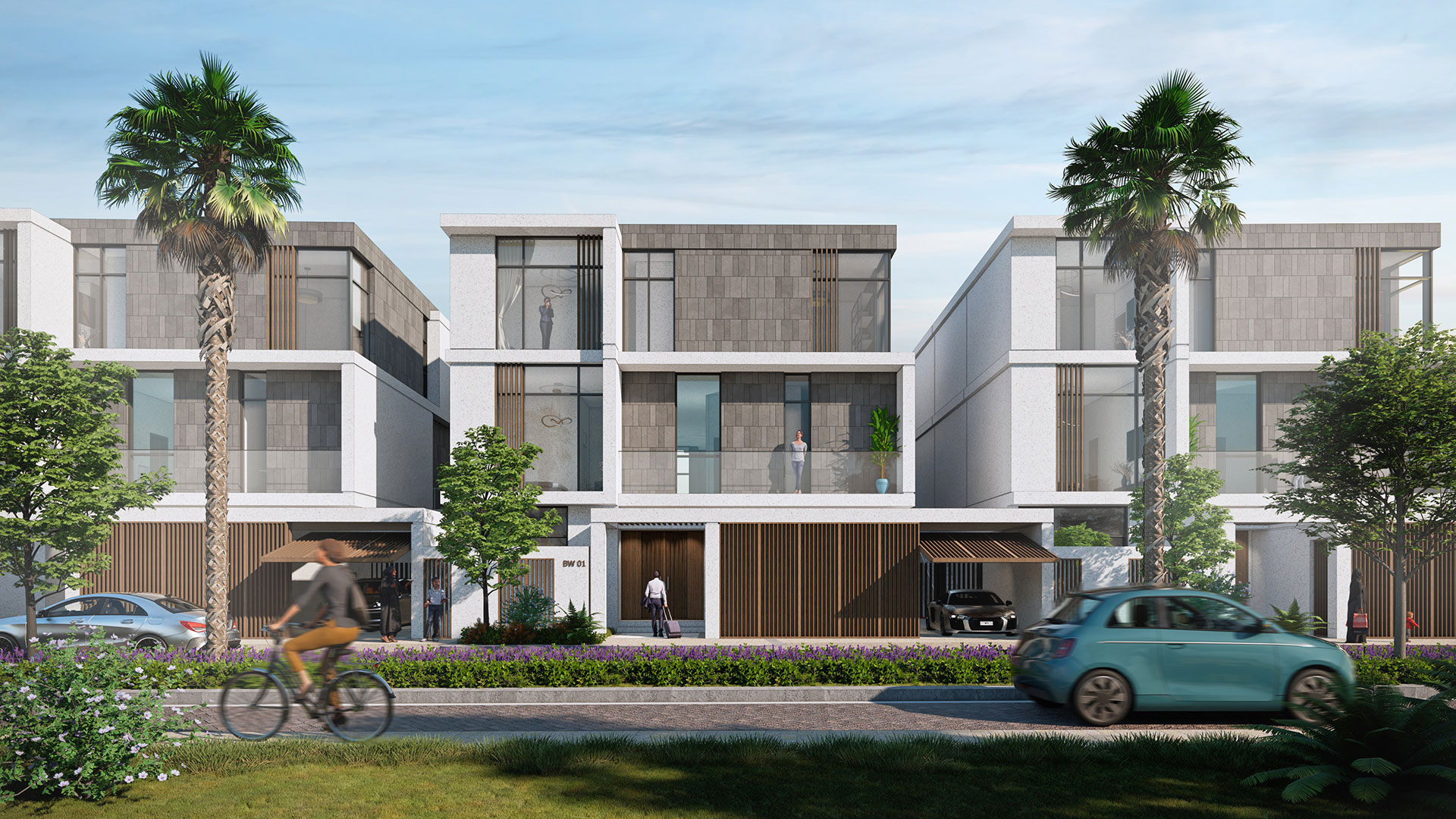 Danah Bay Villas & Townhouses by Dubai Investments presents a distinguished collection of luxury villas and townhouses within the expansive Danah Bay Resort on Al Marjan Island, Ras Al Khaimah. The development features modern architectural design with clean lines, open terraces, balconies, and large windows that integrate natural light and the surrounding environment.