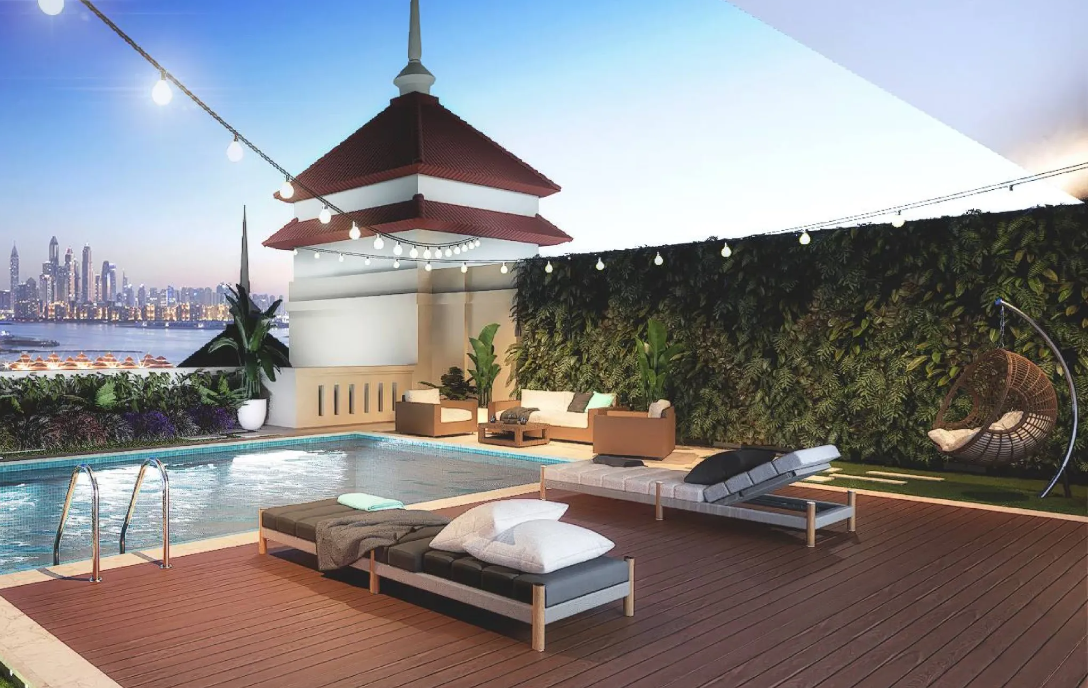 Situated on Palm Jumeirah, the community benefits from well-established infrastructure and convenient access to Dubai’s key destinations. Residents enjoy proximity to beaches, parks, medical centers, and business facilities. The island’s connection via Palm Jumeirah Road and Sheikh Zayed Road allows easy travel to landmarks such as the Burj Khalifa and Dubai Mall within 25 minutes, while Dubai International Airport is approximately 40 minutes away by car.