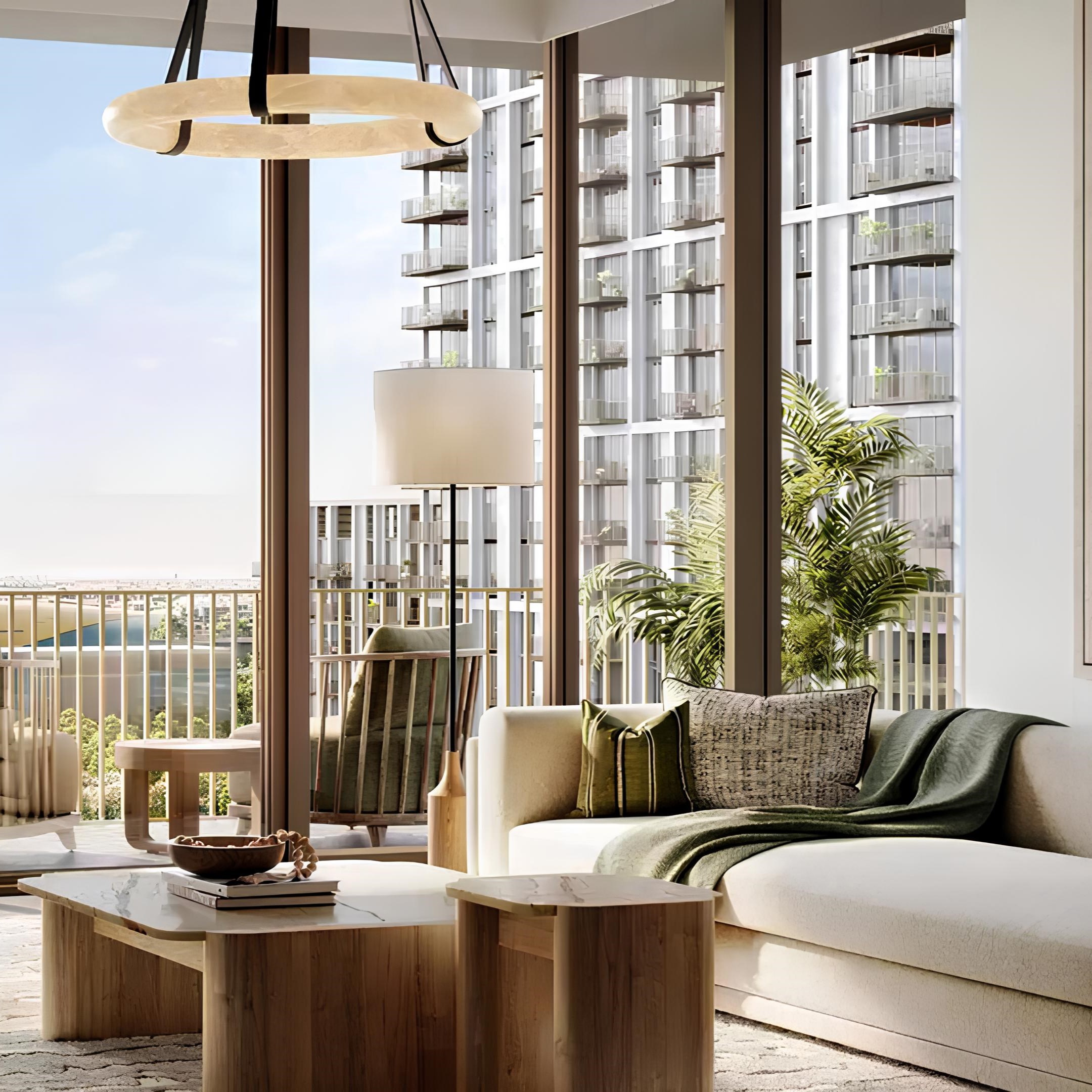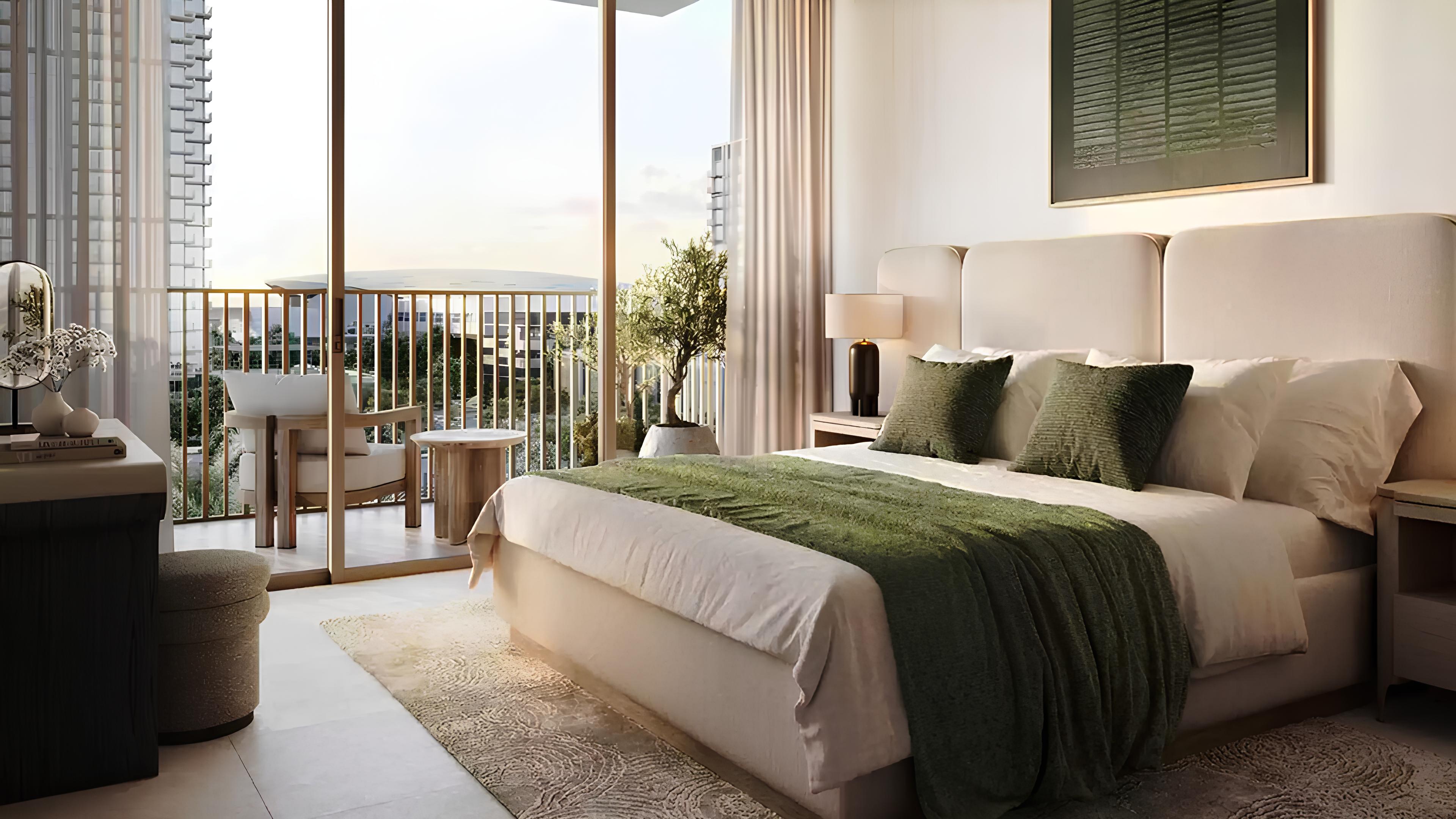 The residences include one-, two-, and three-bedroom apartments finished with contemporary design elements and high-quality materials. These homes offer panoramic waterfront views, combining comfort with refined aesthetics to suit modern lifestyles. The handover is scheduled for September 2027, with pricing reflecting the premium nature of the development.