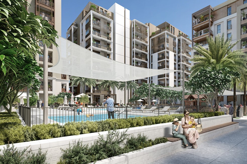Residents benefit from a range of amenities that support an active and social lifestyle. These include a coworking zone, private pool, shared gym and fitness center, landscaped parks, leisure areas, and a children’s play area. The development’s location offers convenient connectivity, with key destinations such as Burj Khalifa and Downtown Dubai accessible within 10 minutes, and Dubai International Airport within 15 minutes. The handover is scheduled for June 2026.