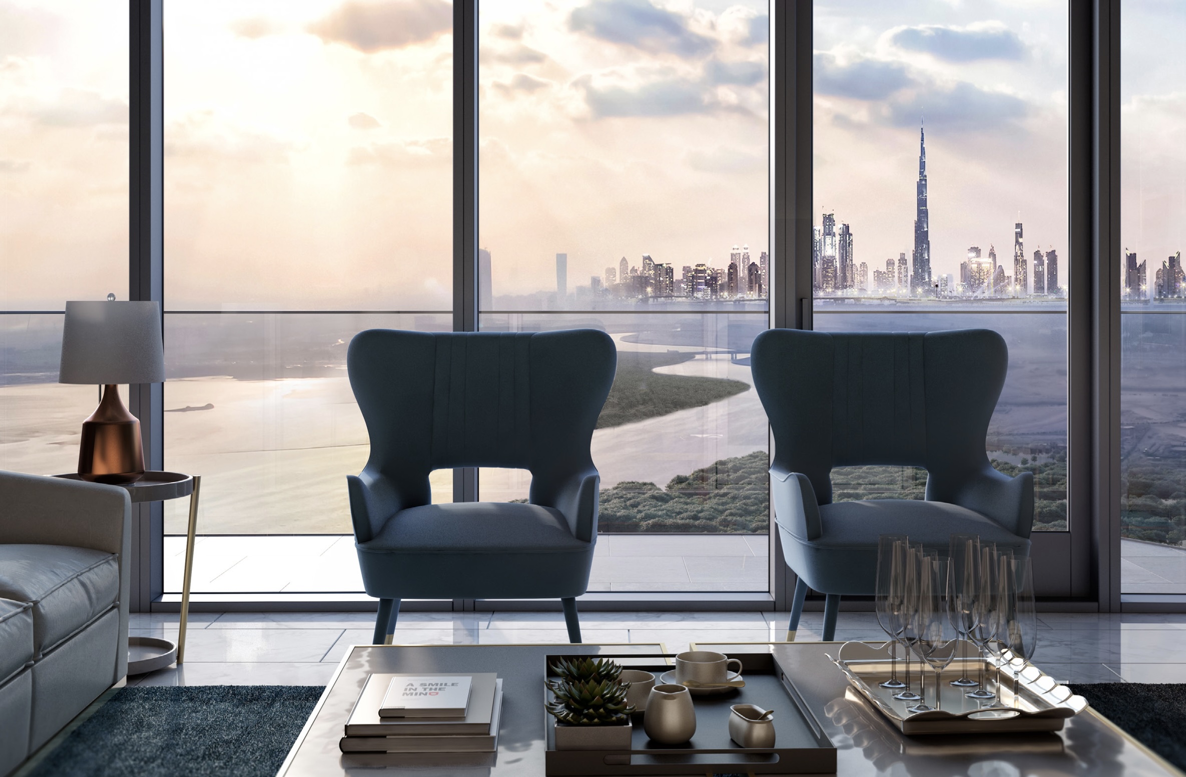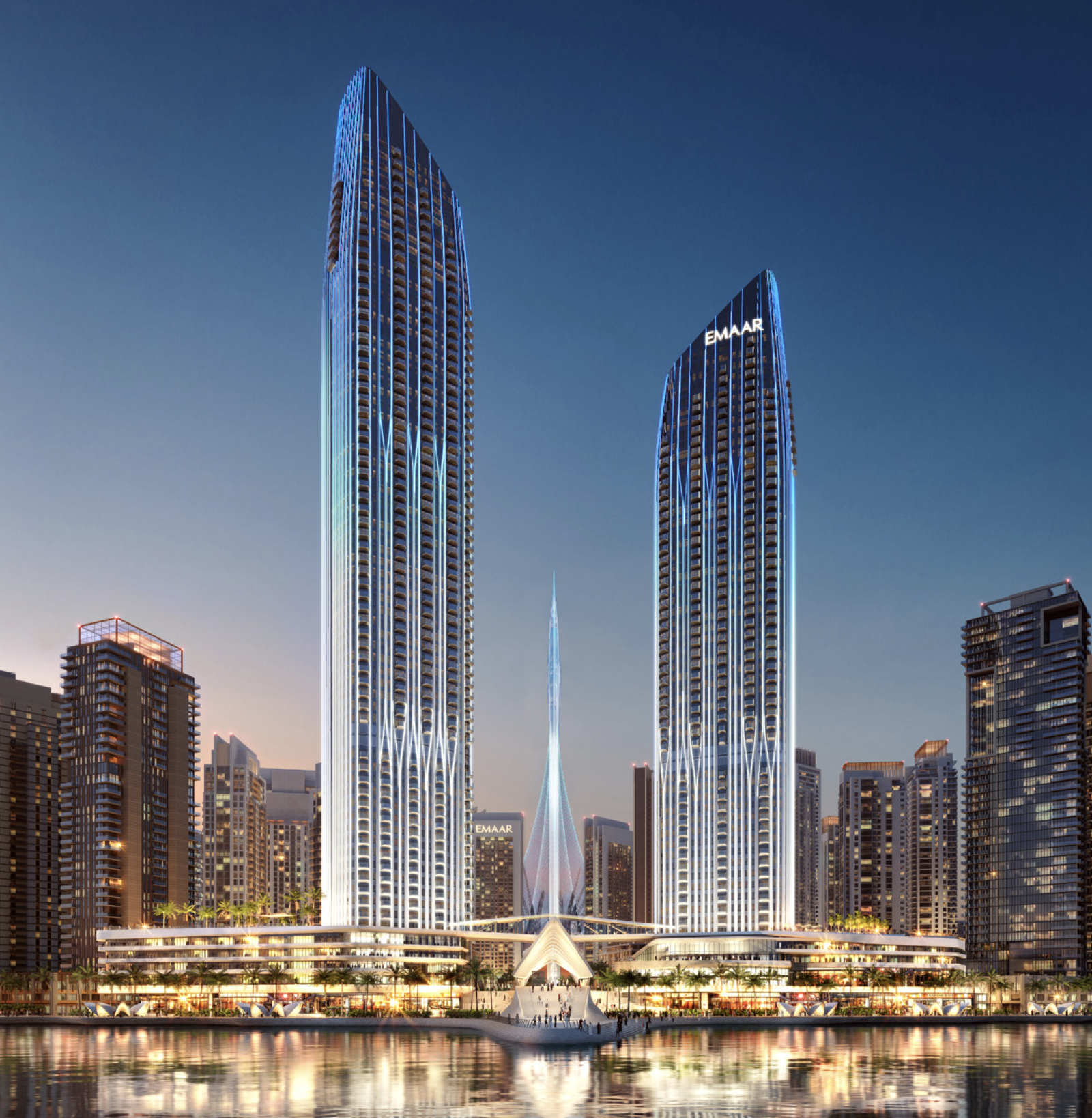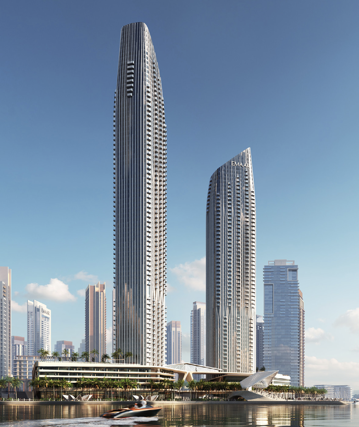 Address Harbour Point by Emaar Properties is a distinctive residential development situated in the waterfront precinct of Dubai Creek Harbour. Comprising two towers of 53 and 65 stories, connected by a glass pedestrian bridge, the project serves as a prominent gateway to the district. The development offers a total of 202 luxury apartments, including an exclusive collection of penthouses on the upper floors.